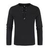 Mens Long Sleeve Cotton Linen Blouse Loose Henley V-Neck Tops T Shirts Blouse