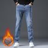 2024 Jesień i Zima Nowe Ciepłe I Pluszowe Grube Proste Nogawki Elastyczne Jeansy Dla Mężczyzn Młodzieży Proste Nogawki Męskie Jeansy Trend