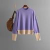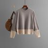 Jesień Zima Vintage Luźny Długi Rękaw Top Blokowy Kolor Sweter Dzianinowy Sweter Z Okrągłym Dekoltem