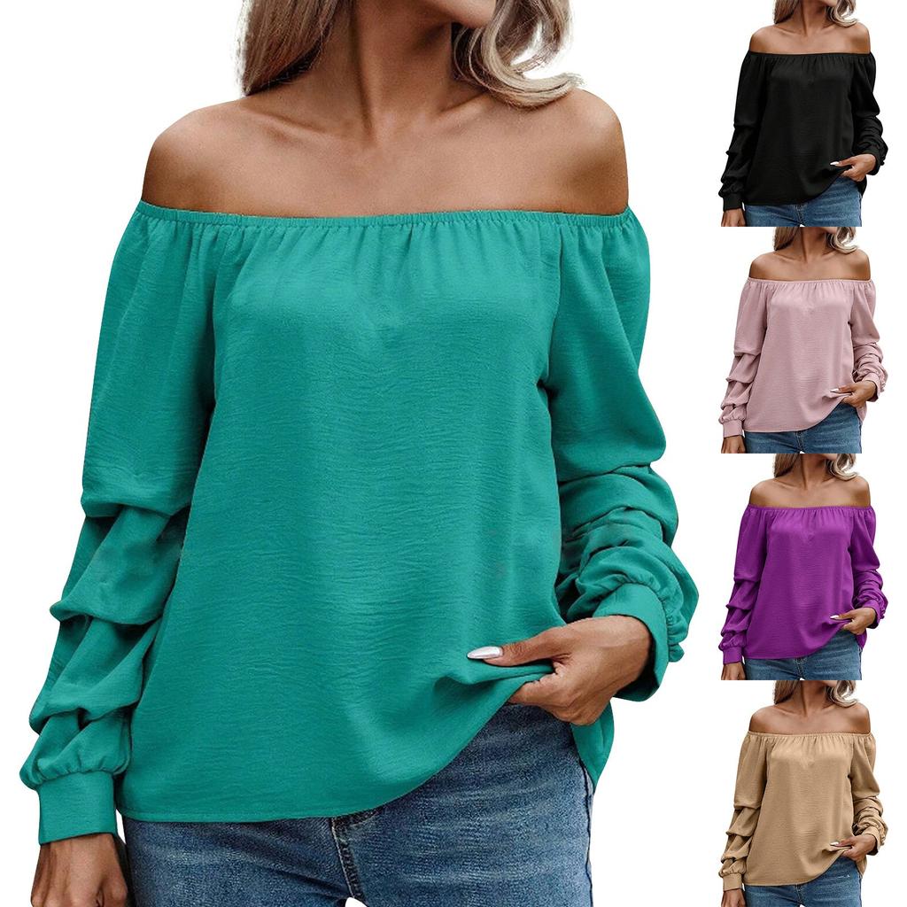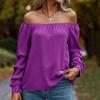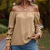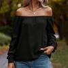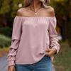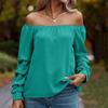 Damska modna, jednokolorowa, swobodna koszula z odkrytymi ramionami i długimi rękawami