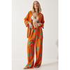 Zestaw damskich spodni kimono palazzo w kolorze pomarańczowym, wzorzystym En00614