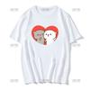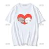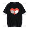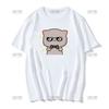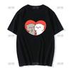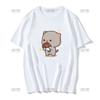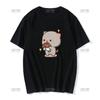 Słodka brzoskwiniowa kotka z kreskówkową parą nadrukowaną koszulką unisex szara wysłana kwiaty do brzoskwiniowej koszulki nowy styl miłośnicy ubrań casualowa koszulka