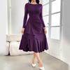 Moda damska Jesień Zima Jednolity kolor Drukuj Długie rękawy O-Neck Wysoka talia Casual Sukienki