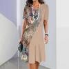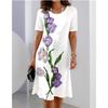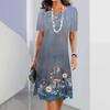 Sukienka z okrągłym dekoltem, nadrukiem w kwiaty, dopasowana do talii, elegancka sukienka dla kobiet, z krótkim rękawem, luźna sukienka na co dzień