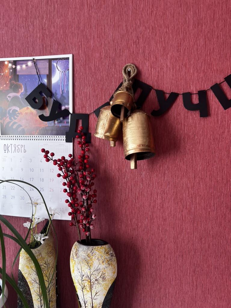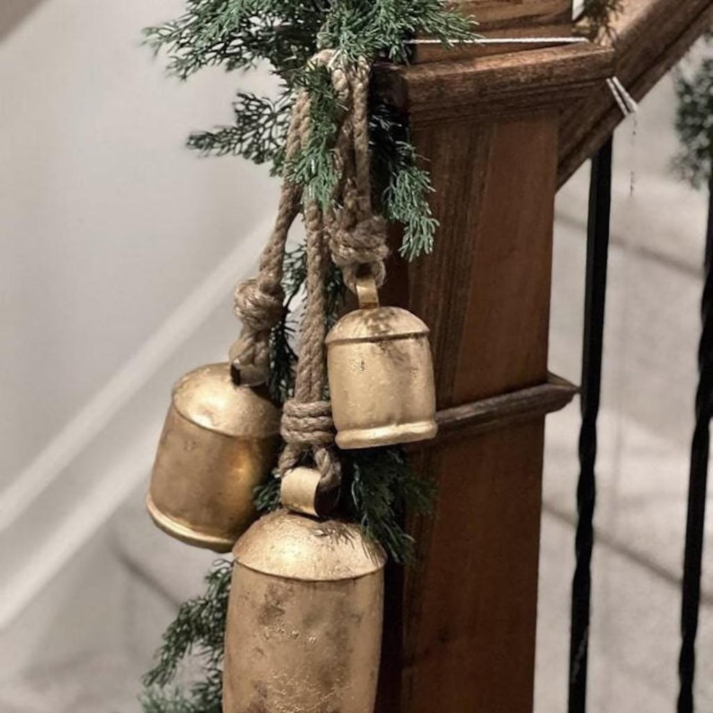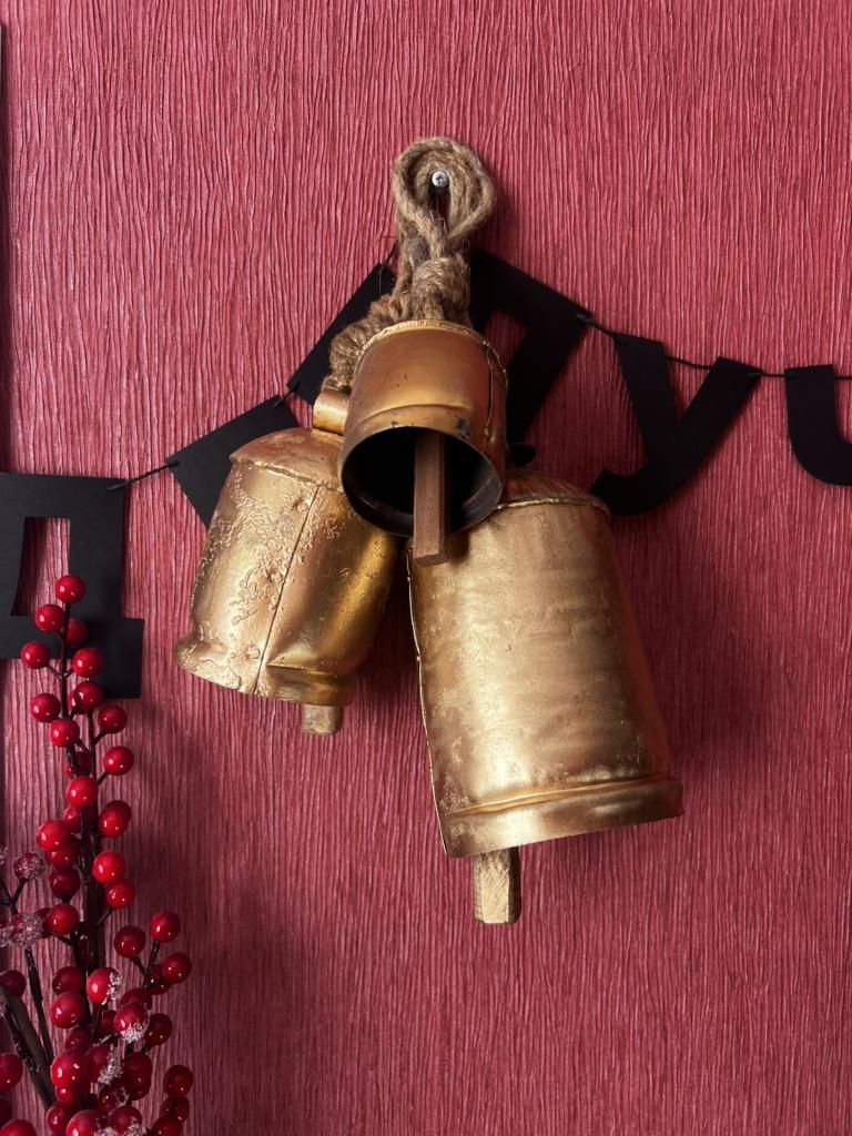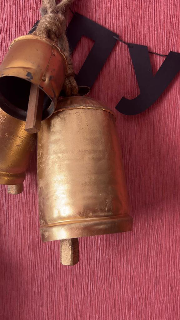 Wiszące dzwonki ścienne w stylu rustykalnym Shabby Chic. Złoty kolor to w rzeczywistości powłoka z mosiądzu. Następnie dzwonki te są wypalane w ogniu, co nadaje im unikalny, rustykalny odcień brązu.