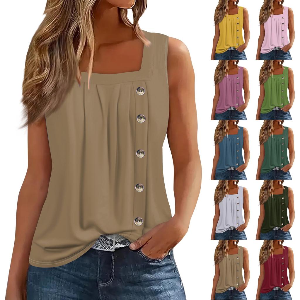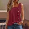 Moda damska Casual Podstawowy Plisowany Zwykły guzik Kwadratowy kołnierzyk Kamizelka bez rękawów Letnie podkoszulki z nadrukiem