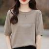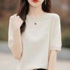 IHUASU Damski letni top z krótkim rękawem z dzianiny ażurowej w jednolitym kolorze z jedwabiu lodowego