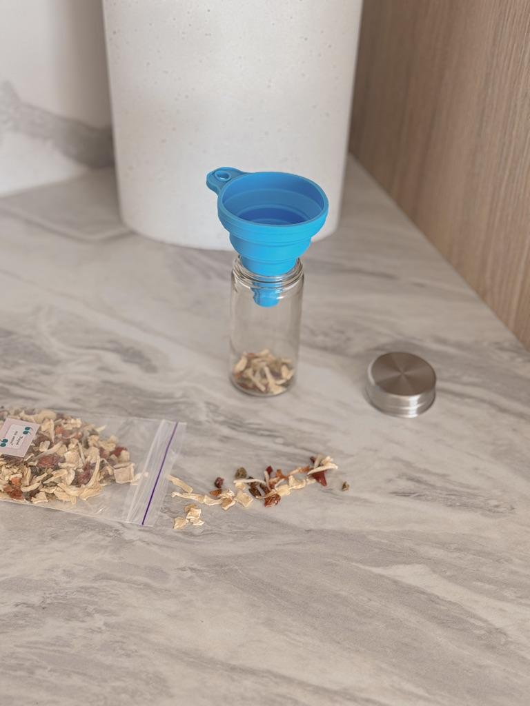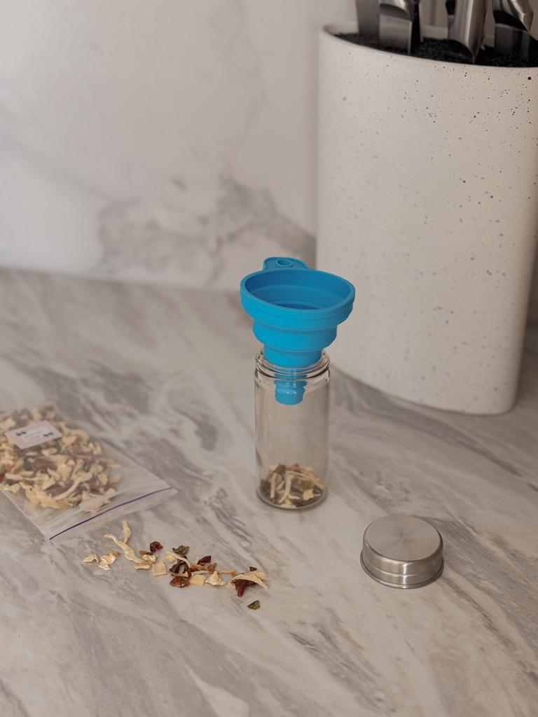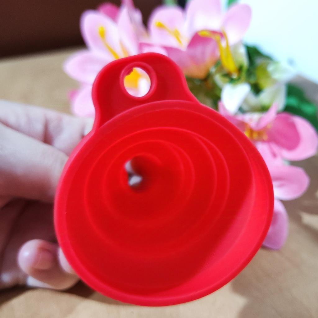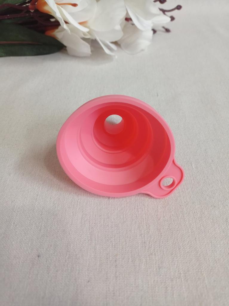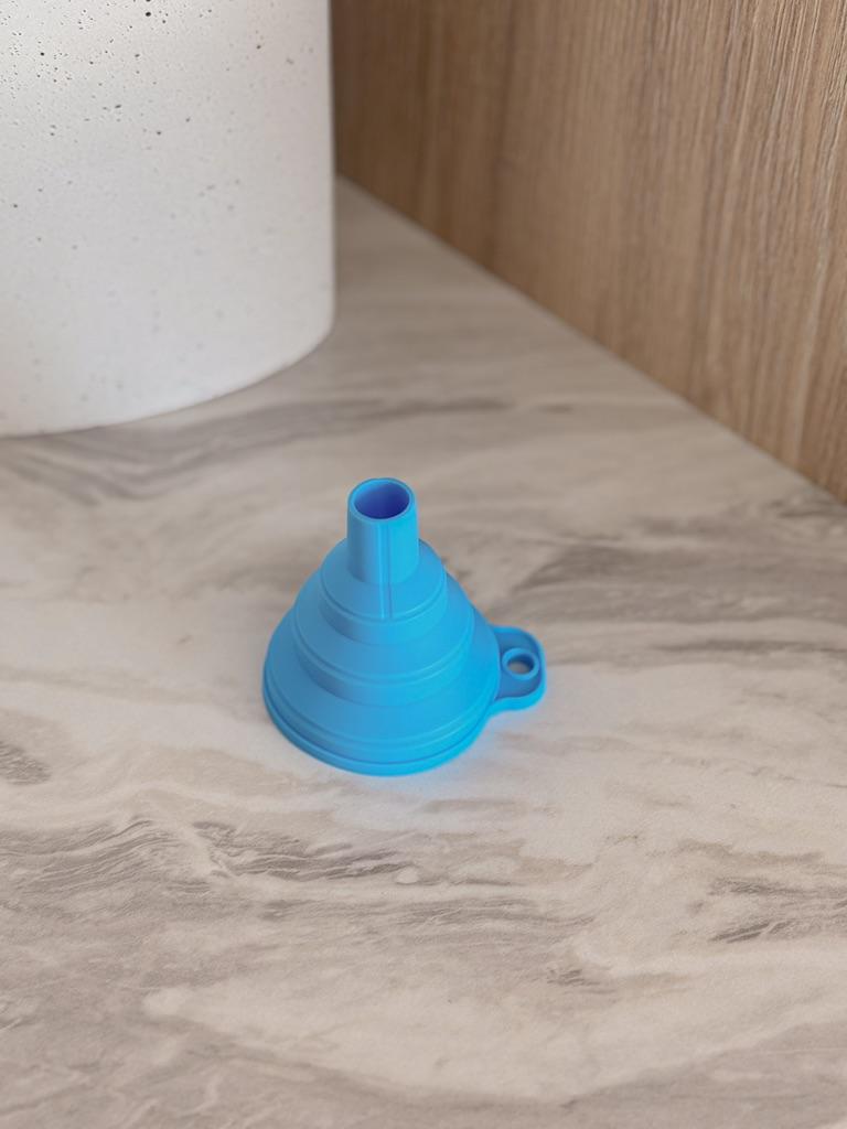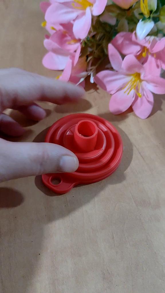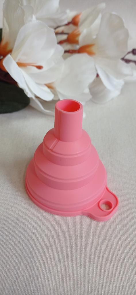 Lejek silikonowy ✨ Mały super elastyczny lejek silikonowy do kuchni. Idealnie nadaje się do nalewania bardzo małych ilości, np. przepuszczenia odrobiny oleju z butelki do olejarki stołowej.. Składa się bardzo łatwo, więc zajmuje bardzo mało miejsca i można go przechowywać w dowolnej szufladzie, jednak jeśli chcesz go powiesić, ma mały otwór z boku.. Zamówiłem w kolorze różowym, ale sprzedawca ma dostępne inne kolory i wszystkie są bardzo ładne. Wysyłka była bardzo szybka, dotarła w ciągu zaledwie dwóch tygodni ze śledzeniem do momentu dostawy.