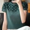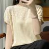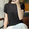 IHUASU Damska wiosenno-letnia bluzka z krótkim rękawem, dzianinowa, luźna, koronkowa, wydrążona, z baskinką
