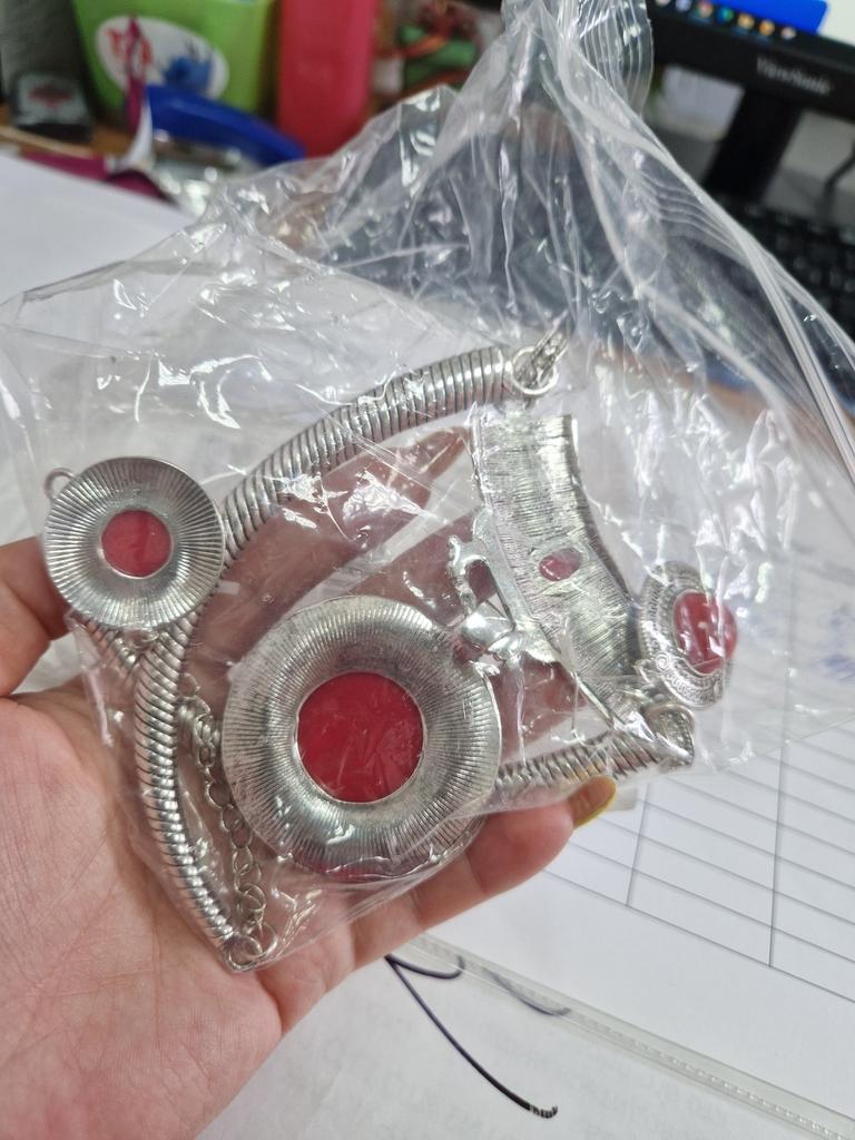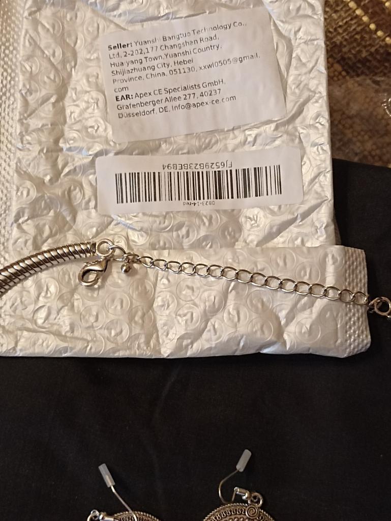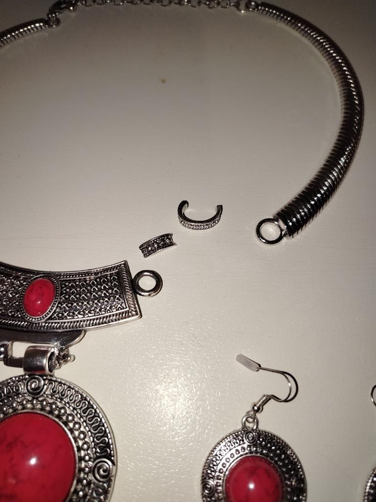 Szykowny komplet, ale nie można go założyć, zapięcie jest przymocowane nieprawidłowo, nie do tej sekcji łańcuszka. Trzeba będzie gdzieś zgłosić się do rzemieślnika w celu przeróbki mocowania. Ale to będzie jeszcze droższe....