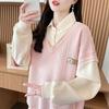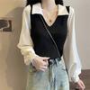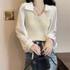 Jesienny i zimowy sweter z dekoltem w serek, łączony sweter z rękawami typu latarnia, dwuczęściowy sweter z dzianiny, top z długimi rękawami dla kobiet
