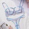 Floral Embroidery Mesh Hollow Out Lingerie Set, Cupless Intimates Bra & Open Crotch Thong, Women's Sexy Lingerie & Underwear
