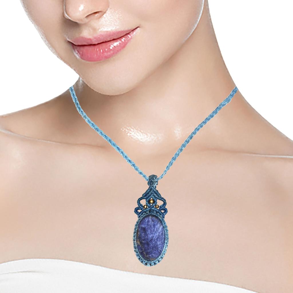 Makrama makrama naszyjnik z sodalitu Naszyjnik z nici peruwiańskiej i tkanego kamienia