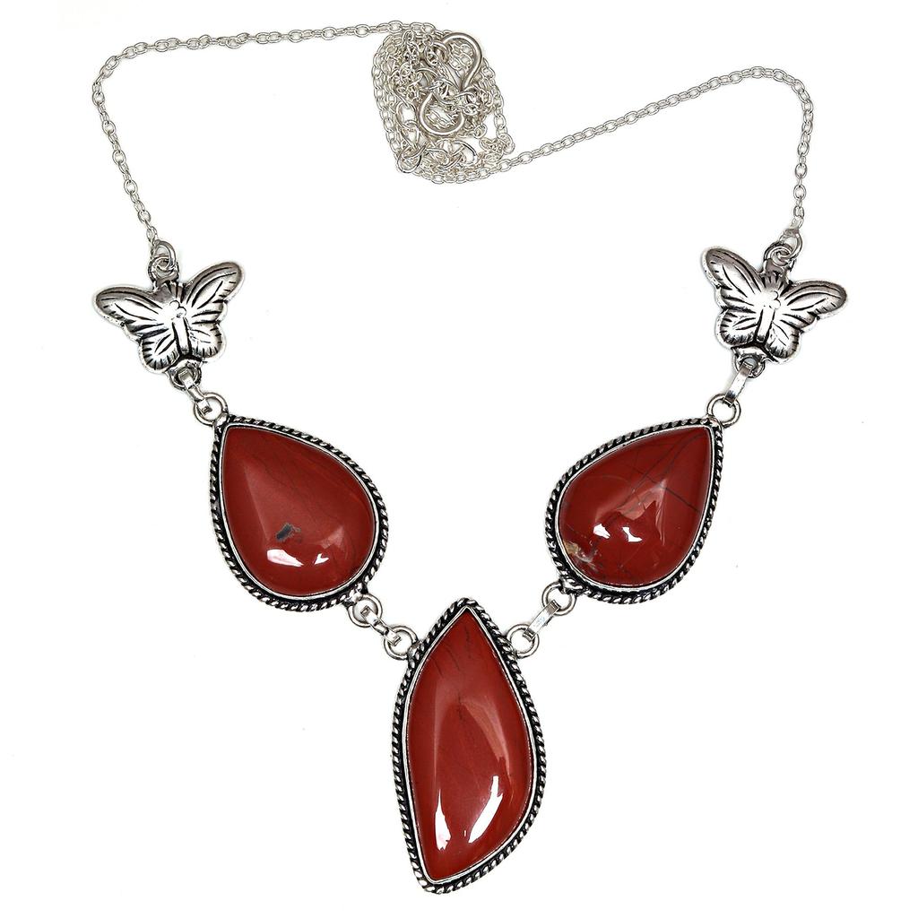 Czerwony Jaspis Kamień Szlachetny Dzień Matki Ręcznie robiona Srebrna Biżuteria Naszyjnik 20 cali