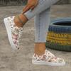 Sneakers Damskie Buty Sznurowane z Nadrukiem Kwiatowym Okrągły Nosek Damskie Płaskie Buty Pojedynczy But Sznurowane Casualowe Płaskie Sneakersy