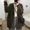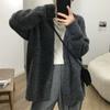 Knitted Cardigan Jacket Women Solid Color V-neck Large Version of Loose Medium-length Top Sweater Autumn Sweater