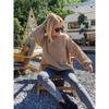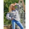 Sweter z okrągłym dekoltem, szydełkowany, gruby, ciepły, damski, z długimi rękawami, dzianinowy, jednolity kolor, luźny, swobodny, podstawowy, koszulowy temperament, dojazd do pracy, jesień, zima
