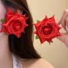 Ręcznie robione satynowe kolczyki trójwymiarowe z różą delikatne różowe romantyczne kolczyki z przesadnymi kwiatami 01