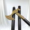 To mosiężna i solidna drewniana replika zabytkowej laski spacerowej
