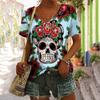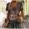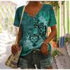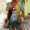 Damski T-shirt z dekoltem w serek i krótkim rękawem Letnia odzież modowa Top z nadrukiem kota Casualowy luźny T-shirt z krótkim rękawem Odzież damska