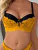 Kontrastowy koronkowy biustonosz push-up, wygodny i elegancki biustonosz z kokardą w blokach kolorów, damska bielizna