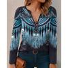 Fashion Casual Long Sleeve Zipper O Neck Retro Printed Pullovers T Shirt Blouse Top for Ladies