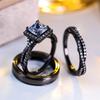 Black Gold Rhinestone Princess Cut Black Or Blue Cz Wedding Engagement Band Bridal Rings Set Size 5 -12