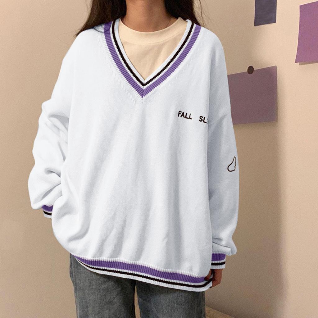 Sweter damski na wiosnę i jesień z dekoltem w serek i długimi rękawami, luźny, uniwersalny