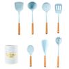 7/8/9/12 SZT. Zestaw Silikonowych Przyborów Kuchennych Drewniana Rączka Narzędzia Kuchenne do Gotowania Pieczenia Akcesoria Kuchenne Wiaderko do Przechowywania