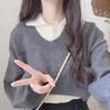 Damski sweter vintage dwuczęściowy japoński jesienno-zimowy z klapami z długim rękawem swetry styl preppy dzianinowe gładkie topy