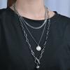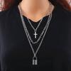 Wielowarstwowy naszyjnik łańcuchowy dla kobiet mężczyzn długi hip hop punk krzyż wisiorek naszyjnik ze stali nierdzewnej urok srebrny kolor biżuteria prezent