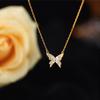 Słodki 925 Sterling Silver Butterfly Naszyjnik Błyszczący cyrkon Wisiorek Panie Elegancki łańcuszek do obojczyka Biżuteria ślubna Prezent świąteczny