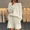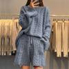 Tooxika Damski Jesień I Zima Nowy Luźny Okrągły Dekolt Skręcony Długi Rękaw Sweter Wysoki Stan Dzianinowe Szorty Dwuczęściowy Garnitur Dla Kobiet