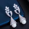 Threegraces Eleganckie Cyrkonia Sześcienna Długie Geometryczne Kolczyki Z Pereł Wiszące Dla Kobiet Biżuteria Ślubna Akcesoria Prezent Er339