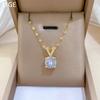 Sztuczne Kamienie Szlachetne Nie Blakną Kolor Wisiorek Litera V Naszyjniki ze Stali Tytanowej Dla Kobiet Złoty Łańcuszek na Szyję Biżuteria Prezent Dla Dziewczyny
