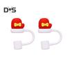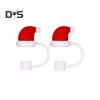 2 szt. Świąteczna silikonowa nakładka na słomkę 10 mm wielokrotnego użytku odporna na kurz nakładka na kubek dekoracja na imprezę Święty Mikołaj bałwan łoś dzwonki choinkowe końcówki słomkowe
