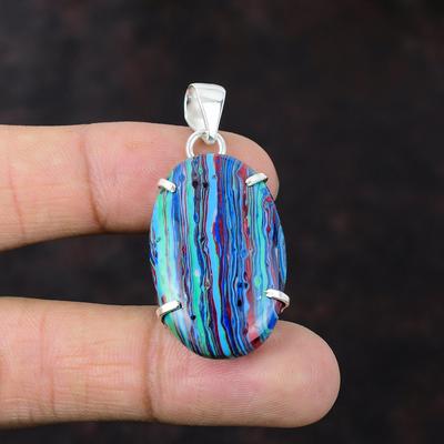 Tęczowy Calsilica Kamień Szlachetny Posrebrzany Srebrem Próby 925 Wisiorek Biżuteria PQY-IJ4402