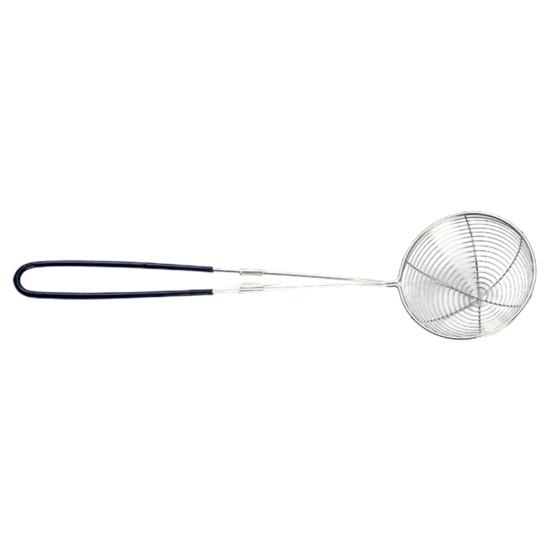 Łyżka cedzakowa Długi uchwyt odporny na oparzenia Odporny na ciepło Można myć w zmywarce Łatwy do czyszczenia Filtrujący Stal nierdzewna Skimmer do pikantnych smażonych klusek