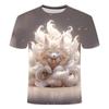 2024 Lato Nowy 3D Drukowany Krótki Rękaw Spersonalizowany Dziewięcioogonowy Lis Męski i Damski Okrągły Dekolt T-shirt