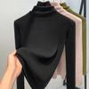 Damski sweter z wysokim kołnierzem na jesień i zimę, dzianinowy, w jednolitym kolorze, z wysokim stanem i dekoltem w serek