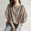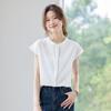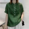 Letnia luźna koszula z kołnierzem stojącym, gładka, z krótkim rękawem, damska, modna bluzka z rękawem typu "latający rękaw", top