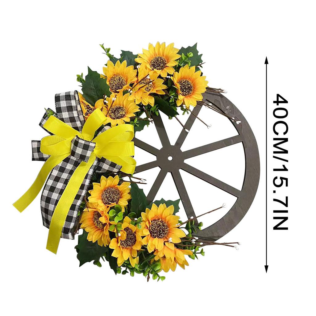 Słonecznikowa Girlanda z Kokardek Ozdoby Sztuczny Kwiat Drewniane Koło Wiszące na Drzwi Dekoracja Ścienna