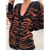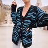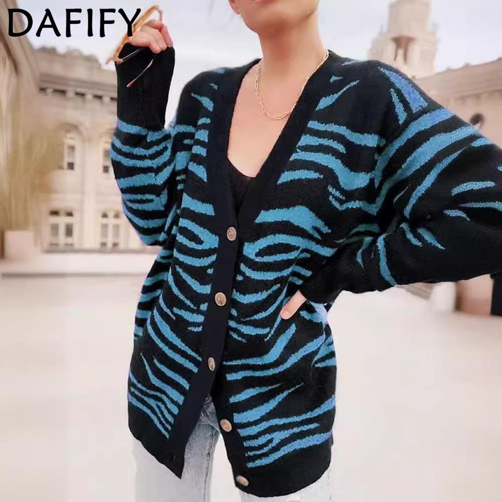 DAFIFY Women's Fashion Casual Fall Winter Zebra Print Long Sleeve V-Neck Sweaters