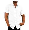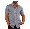 Stylowa męska koszula lniana z krótkim rękawem i kołnierzykiem zapinanym na guziki na rok 2019