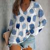 Damska koszulka z długim rękawem i dekoltem w kształcie litery V, wiązana w barwione kwiatowe paski, swobodny top