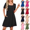 Damskie sukienki letnie codzienne sukienki sundress luźne bufiaste rękawy zwiewne kwadratowy dekolt krótki rękaw mini sukienki