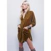 Jesienne Damskie Sukienki Mini z Dekoltem V Zapinane na Guziki Luźne z Długim Rękawem Sukienka Koszulowa ze Złotego Weluru