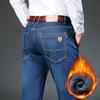 2025 Męskie biznesowe modne ciepłe proste polarowe dżinsy klasyczny styl zimowe pogrubione spodnie jeansowe spodnie casualowe męskie