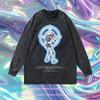 Streetwear Genie Graphic Washed Black T-Shirt Cotton Unisex Plus Size Long Sleeves T Shirt