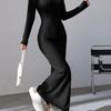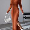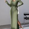 Damska seksowna dzianinowa sukienka z dekoltem w serek, rozcięciem na plecach, jesień zima, długi rękaw, elastyczny, podstawowy sweter